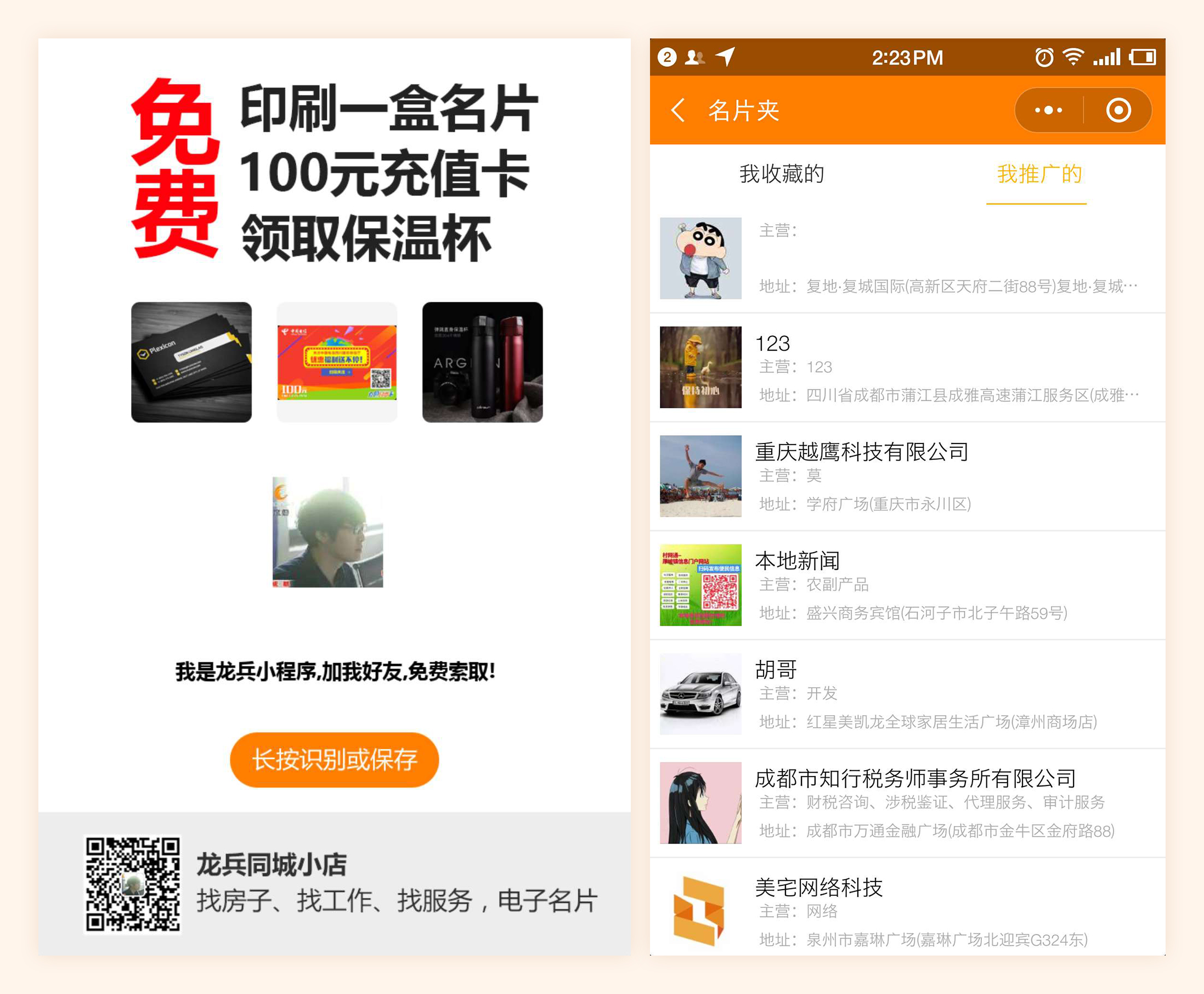 1、免費做電子名片 2、發名片微信群 3、查詢名片夾-我推廣的 4、截圖領取禮品
